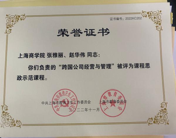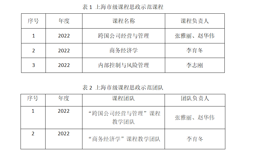 坚持“教育者先受教育”,建强课程思政主力军。金融系、商务经济系先后获得“上海市教育系统巾帼文明岗”称号,国际经济与贸易系获得“上海市教育系统三八红旗集体”称号,学院拥有上海市育才奖、上海市教育系统巾帼建功标兵等教书育人典型,多名青年教师在上海高校青年教师教学竞赛等活动中斩获奖项和荣誉。