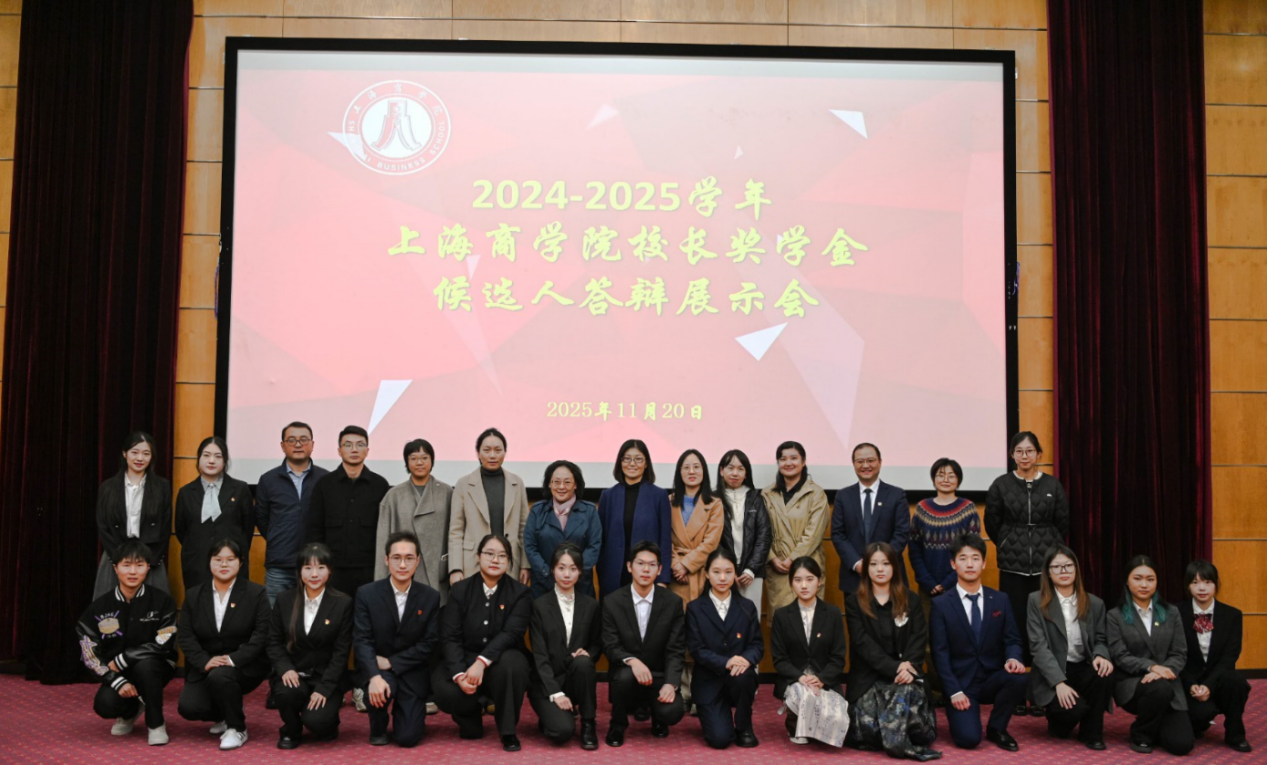 为深入学习贯彻党的二十届四中全会精神,选出“有理想、敢担当、能吃苦、肯奋斗”的新时代青年榜样,11月20日晚,上海商学院第十三届校长奖学金答辩展示会在奉浦校区130报告厅顺利举行。校党委副书记、副校长劳晓芸,相关职能部门负责人,各二级学院党总支副书记以及师生代表共同出席了本次活动。