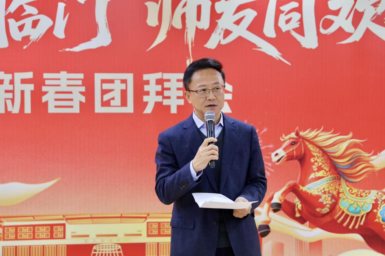 校党委书记沈大明发表新春致辞。他表示,过去的2025年是学校蓬勃发展的一年。这一年,学校顺利举办了建校75周年系列活动,并同心协力通过了教育部本科教育教学审核评估。在此坚实基础之上,学校全面启动综合改革,将全面提升人才培养质量作为一切工作的核心。他向学子们提出三点希望:一是要跃马争先,做开拓前沿的“破风者”,努力成长为“商科+科技”的复合型人才;二是要群马竞进,做并肩奋斗的“同行者”,塑造兼具商业头脑与人文情怀的独特气质;三是要骏马致远,做踏实耕耘的“实干者”,保持马不停蹄的干劲,在新的一年里策马扬鞭、逐梦新程。