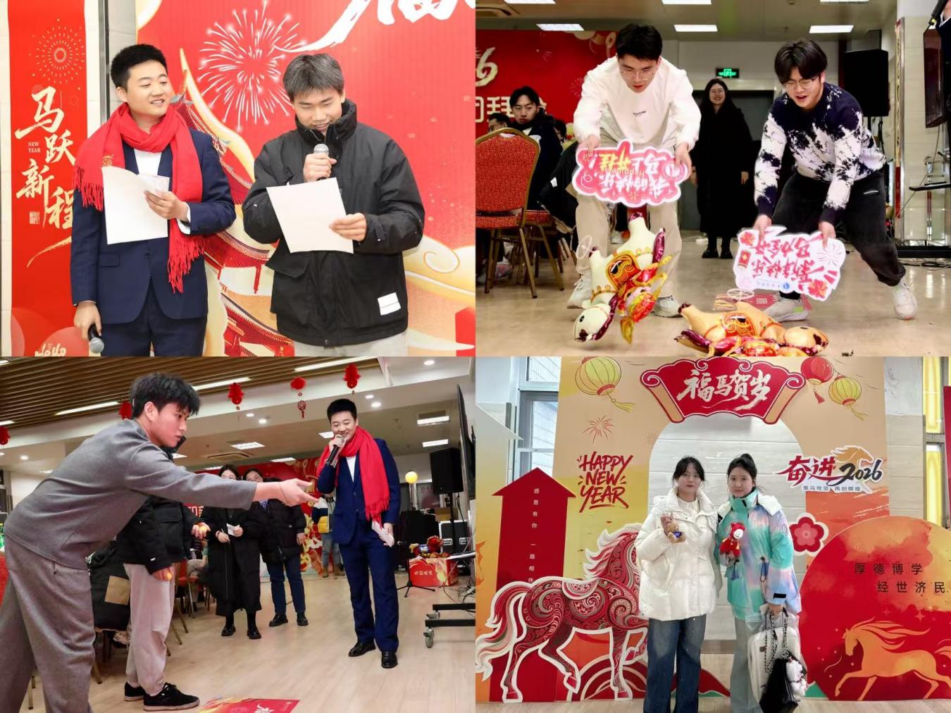 团拜会现场,文艺节目、幸运抽奖与互动游戏三大环节相互穿插、精彩纷呈,将现场的欢乐氛围一次次推向高潮。文艺节目展演环节亮点纷呈,师生们带来的二胡独奏《喜洋洋》、歌曲独唱《如意》《如愿》《青藏高原》、合唱《朋友》等节目喜庆热烈,尽显我校师生昂扬奋进的精神风貌,共同表达对新一年的无限期待。幸运抽奖环节贯穿团拜会全程,每一次抽奖都伴随着现场师生的欢呼与期待,让新春的喜悦与幸运一同传递。互动游戏与趣味环节则让师生零距离同乐,福语接龙、祝福视频让暖心吉言与真挚期许满溢现场。所有精彩在全体演职人员及现场师生合唱的《难忘今宵》中迎来收尾,熟悉的旋律让温馨的团拜会氛围达到顶峰。