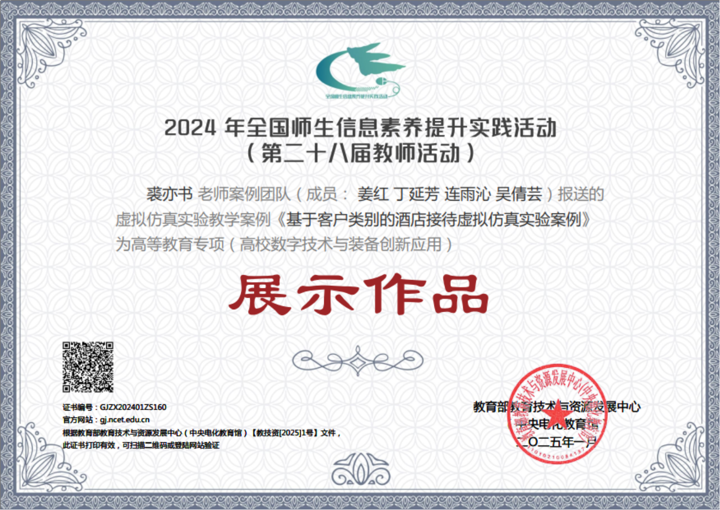 裘亦书老师案例团队的虚拟仿真实验教学案例入选2024年全国师生信息素养提升实践活动高等教育专项(高校数字技术与装备创新应用)展示作品